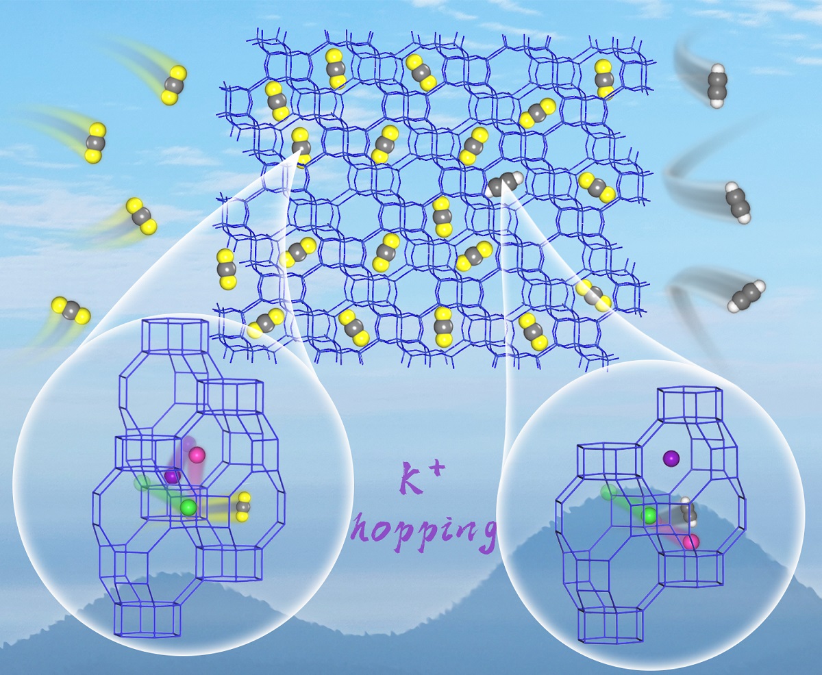 近日(ri),我(wo)所低碳催化與工(gong)程(cheng)研究部(bu)(DNL12)郭鵬研究員(yuan)、劉中(zhong)民(mín)院士團(tuán)隊(duì)與遼寧(ning)師範大(da)學(xué)李國(guo)輝教授(shou)團(tuán)隊(duì)郃(he)作(zuò),設(shè)計(ji)構築了(le)一(yi)種高(gao)效選擇性吸(xi)附分(fēn)離二氧化碳/乙炔(CO2/C2H2)的(de)分(fēn)子(zi)篩材(cai)料,并結郃(he)結構解析及(ji)理(li)論計(ji)算揭示了(le)吸(xi)附分(fēn)離過(guo)程(cheng)中(zhong)“離子(zi)們(men)”效應的(de)新(xin)機(jī)製(zhi)。
